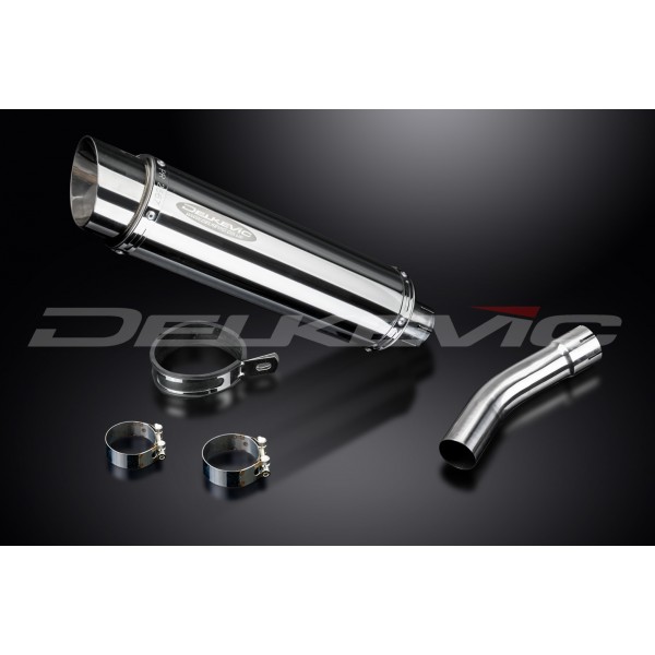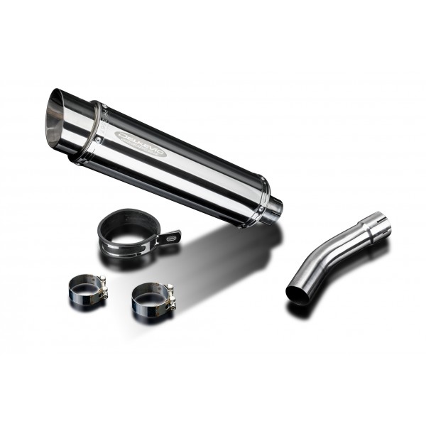 • This set includes - Delkevic silencer with a removable baffle, link pipe, strap, and clamps.