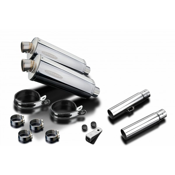 • This set includes - Delkevic silencers with removable baffles, link pipes, straps, clamps, bracket, and fixings.
