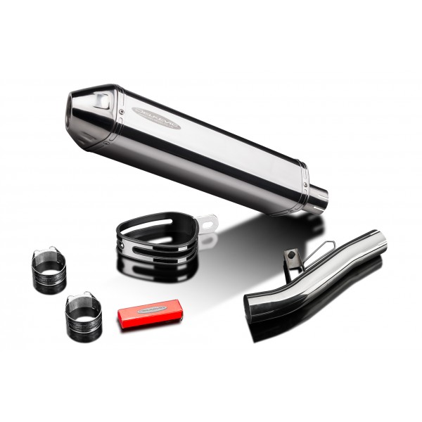 • This set includes - Delkevic silencer with a removable baffle, link pipe, strap, and clamps.