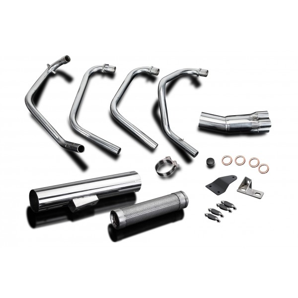 - This set includes - Delkevic down pipes, Classic style silencer with a removable baffle, clamp, gaskets, brackets, stand stop rubber, spring hooks, nyloc nuts, washers, and cap screws.