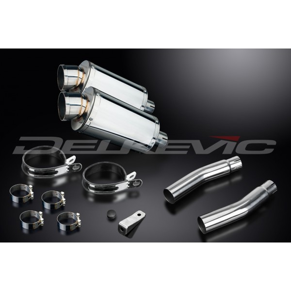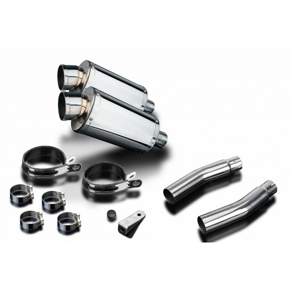 - This set includes - Delkevic silencers with removable baffles, link pipes, silencer straps, clamps, bracket, and fixings.