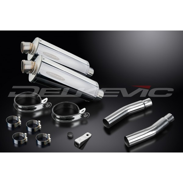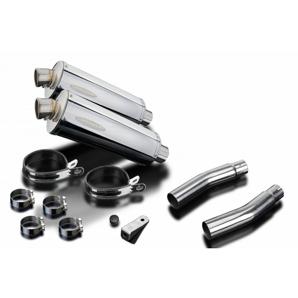 • This set includes - Delkevic silencers with removable baffles, link pipes, silencer straps, clamps, bracket, and fixings.