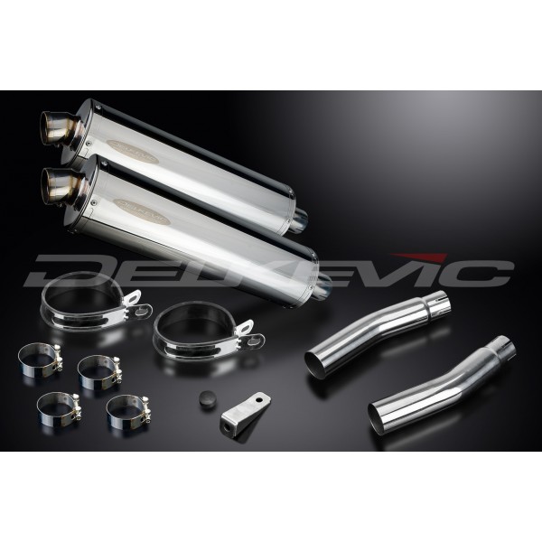 - This set includes - Delkevic silencers with removable baffles, link pipes, silencer straps, clamps, bracket, and fixings.