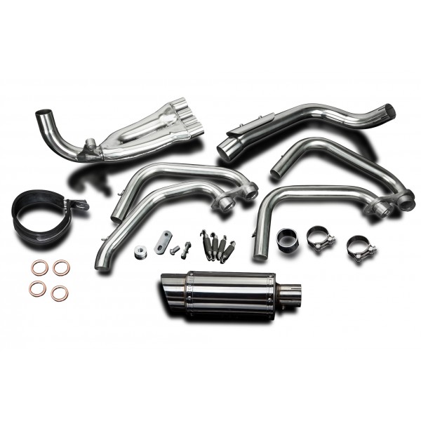 • This set includes - Delkevic down pipes, link pipes, silencer with removable baffle, strap, clamps, gaskets, bracket, spacer, spring hooks, screws, washer, and nyloc nut.