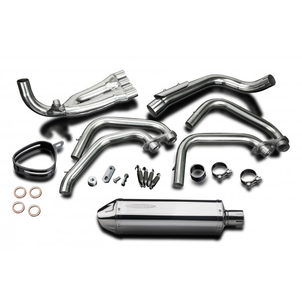 • This set includes - Delkevic down pipes, link pipes, silencer with removable baffle, strap, clamps, gaskets, bracket, spacer, spring hooks, screws, washer, and nyloc nut.