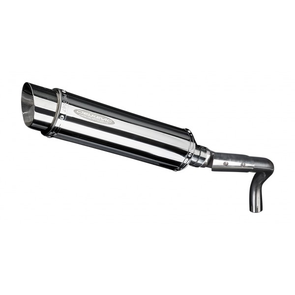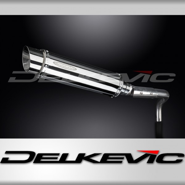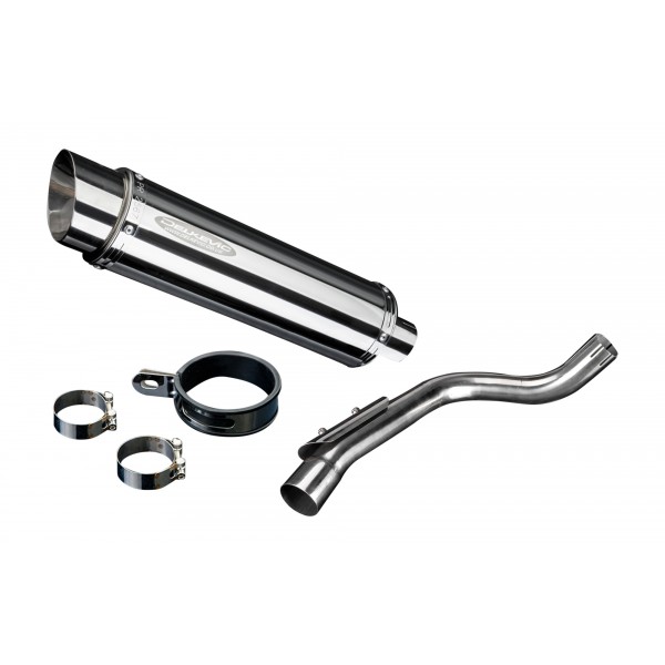 • This set includes - Delkevic silencer with a removable baffle, link pipe, clamps, and strap.