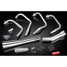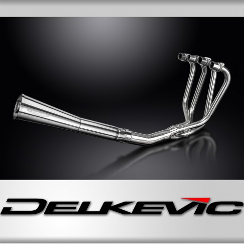 - This set includes - Stainless Delkevic downpipes, classic style stainless megaphone silencer, and bracket..