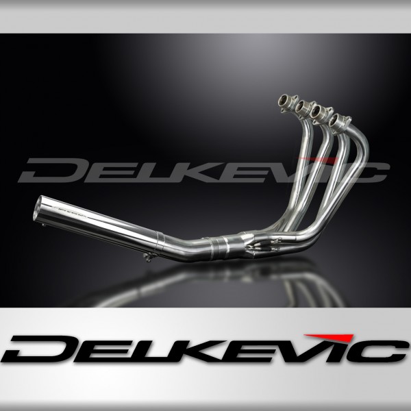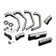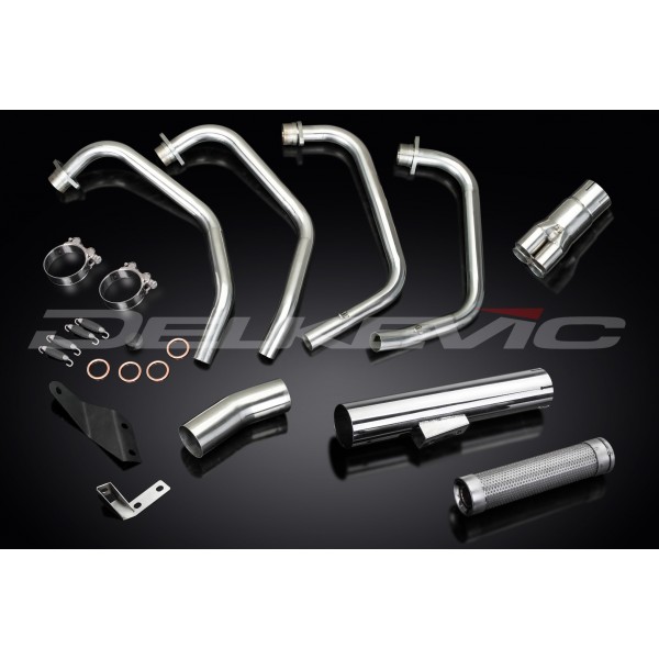 • This set includes - Delkevic down pipes, Classic style silencer with a removable baffle, link pipe, gaskets, bracket, stand stop rubber, spring hooks, and clamps.