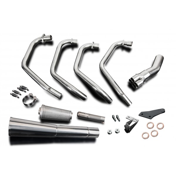 • This set includes - Delkevic down pipes, Classic style silencer with a removable baffle, clamp, gaskets, bracket, and fixings.
