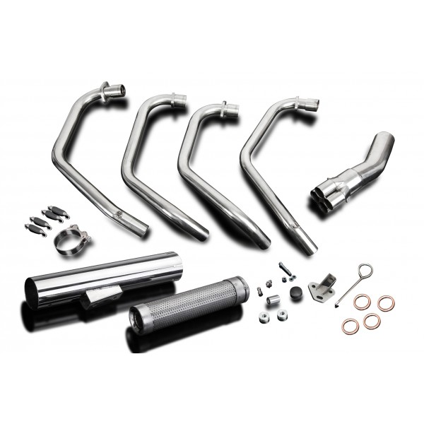 • This set includes - Delkevic down pipes, Classic style silencer with a removable baffle, clamp, gaskets, bracket, and fixings.