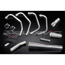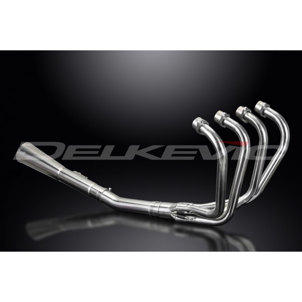 • This set includes - Delkevic down pipes, Classic style silencer with a removable baffle, link pipe, gaskets, bracket, stand stop rubber, spring hooks, and clamps.