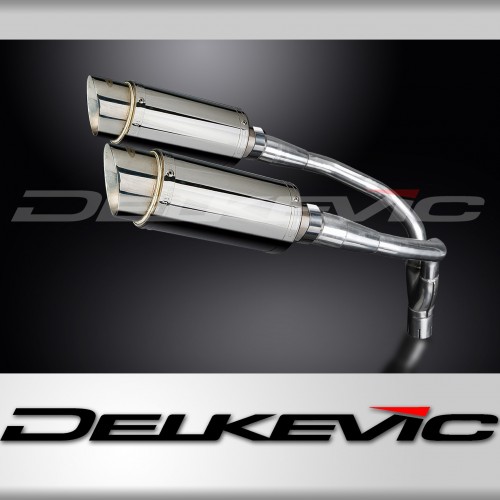 • This set includes - Delkevic silencers with removable baffles, link pipe, straps, gasket, and clamps.