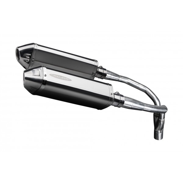 • This set includes - Delkevic silencers with removable baffles, link pipe, straps, gasket, and clamps.