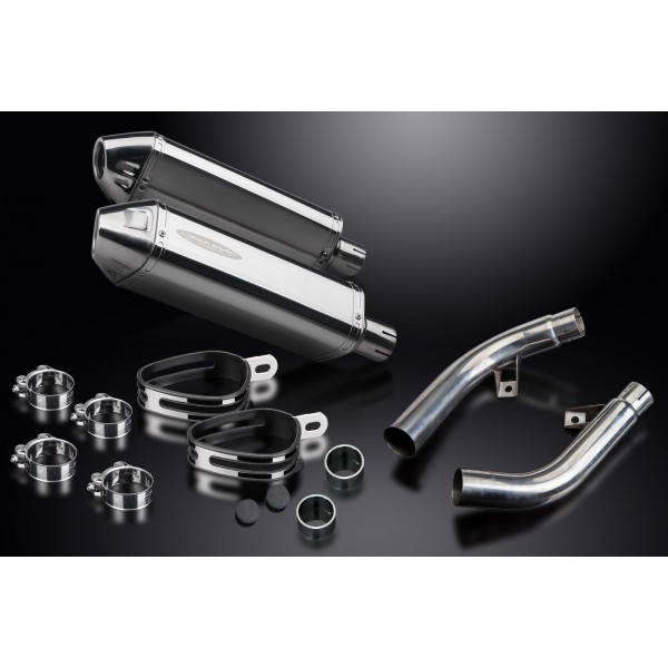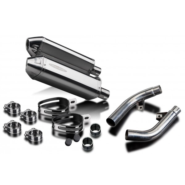 • This set includes - Delkevic silencers with removable baffles, link pipes, straps, clamps, and brackets.