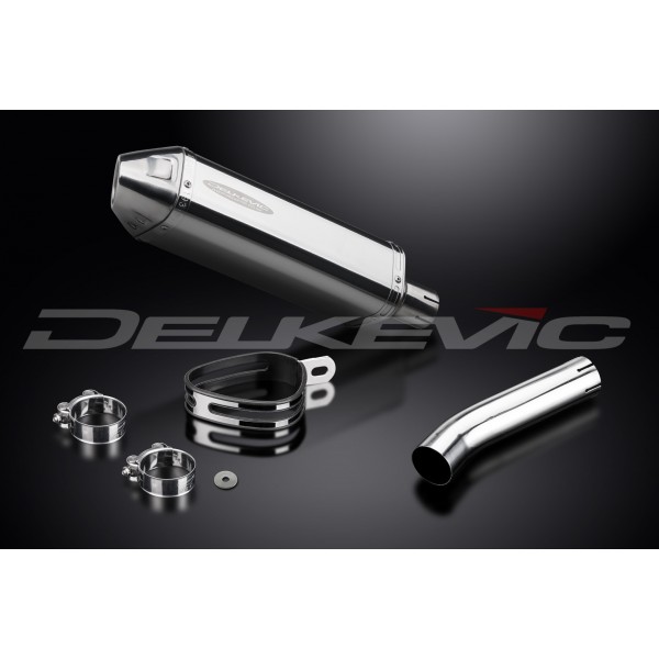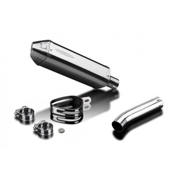 • This set includes - Delkevic silencer with a removable baffle, linkpipe, clamps, and strap.
