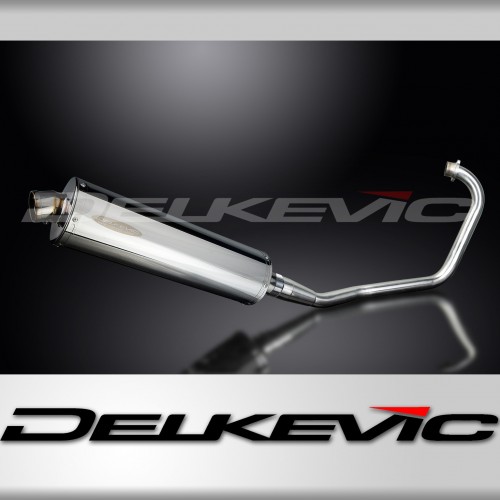 Tags: honda, cbf125, 2008-2015, full, exhaust, system, 450mm, stainless, oval, bsau, silencer, COM060J