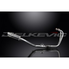 • This set includes - Delkevic down pipes, link pipe, silencer with a removable baffle, strap, clamps, and gaskets.