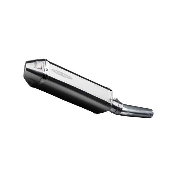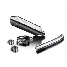 • This set includes - Delkevic silencer with a removable baffle, link pipe, clamps, and strap.