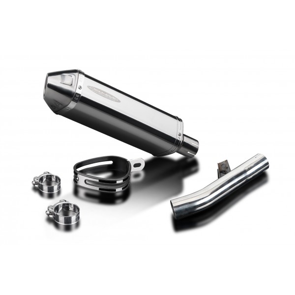 • This set includes - Delkevic silencer with a removable baffle, linkpipe, clamps, and strap.