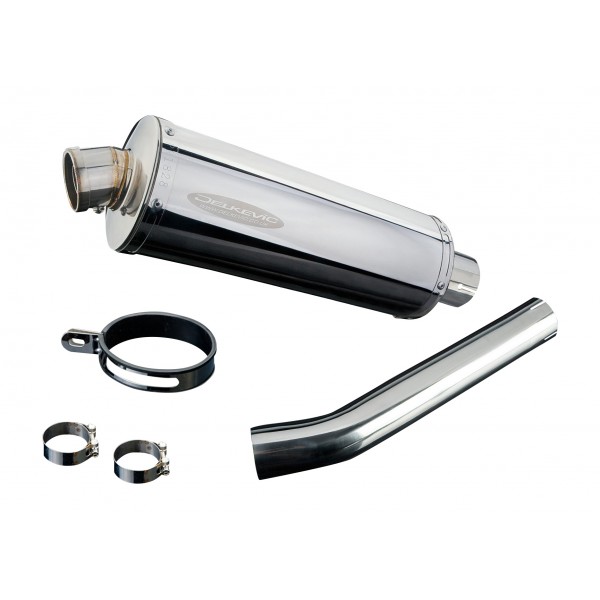 • This set includes - Delkevic silencer with a removable baffle, link pipe, strap, and clamps.