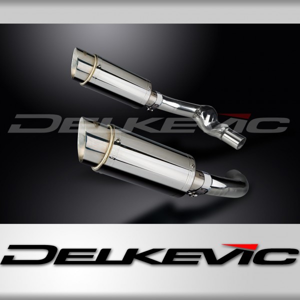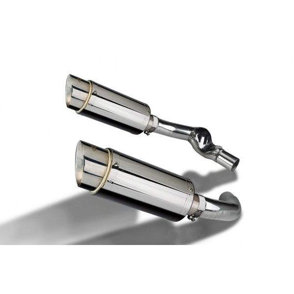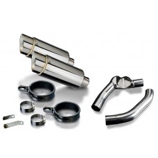 • This set includes - Delkevic silencers with removable baffles, link pipes, straps, clamps, and brackets.