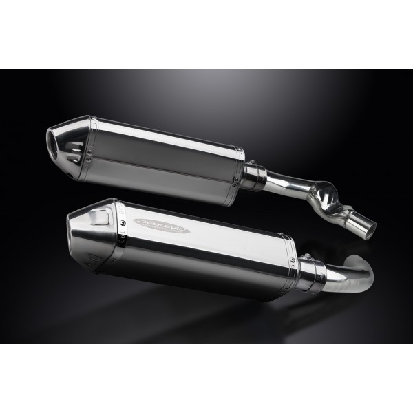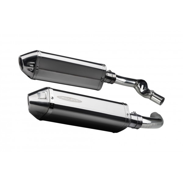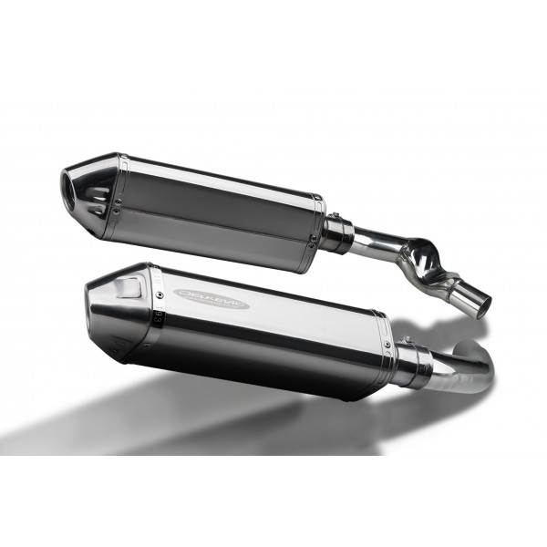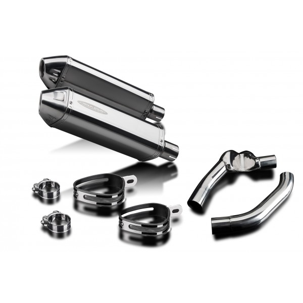 • This set includes - Delkevic silencers with removable baffles, link pipes, straps, clamps, and brackets.