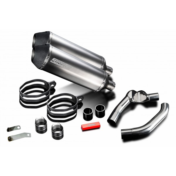 • This set includes - Delkevic silencers with removable baffles, link pipes, straps, clamps, and brackets.