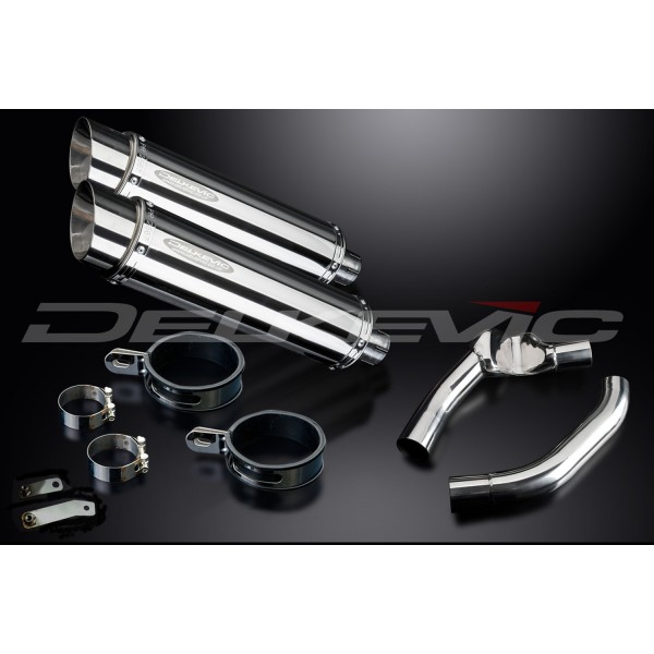 • This set includes - Delkevic silencers with removable baffles, link pipes, straps, clamps, and brackets.