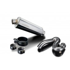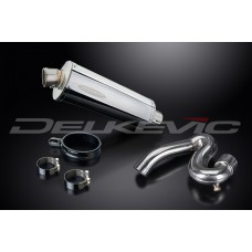 • This set includes - Delkevic silencer with a removable baffle, link pipe, strap, and clamps.