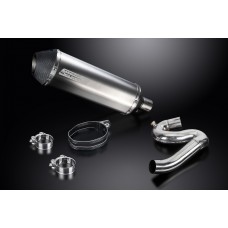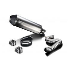 • This set includes - Delkevic silencer with a removable baffle, link pipe, clamps, and strap.