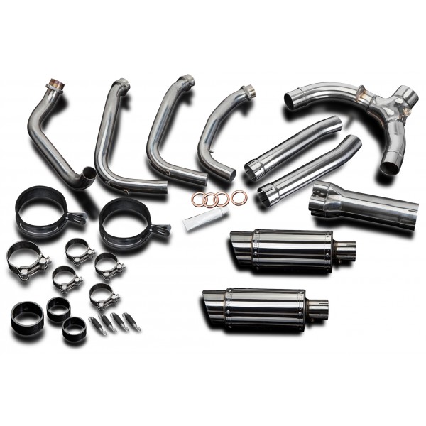 • This set includes - Delkevic down pipes, collector box, link pipes, silencers with removable baffles, straps, gaskets, clamps, and spring hooks.