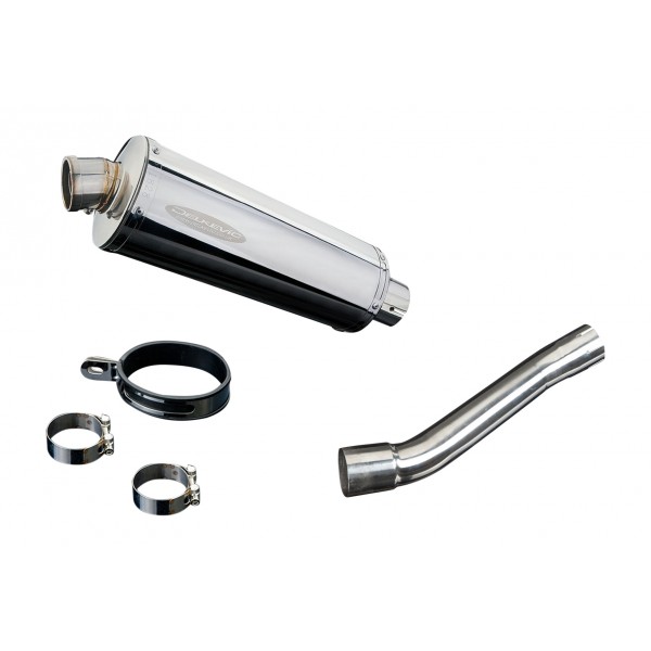• This set includes - Delkevic silencer with a removable baffle, link pipe, strap, and clamps.