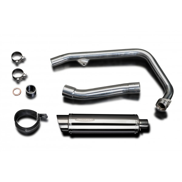 • This set includes - Delkevic down pipe, link pipe, silencer with a removable baffle, strap, clamps, and gaskets.