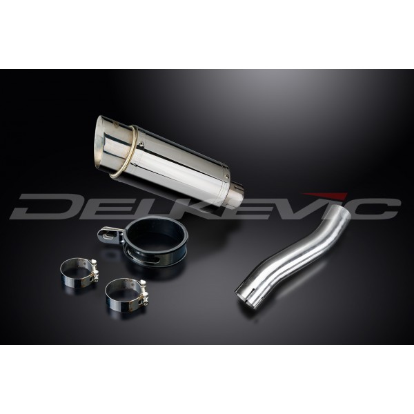 • This set includes - Delkevic silencer with a removable baffle, link pipe, strap, and clamps.