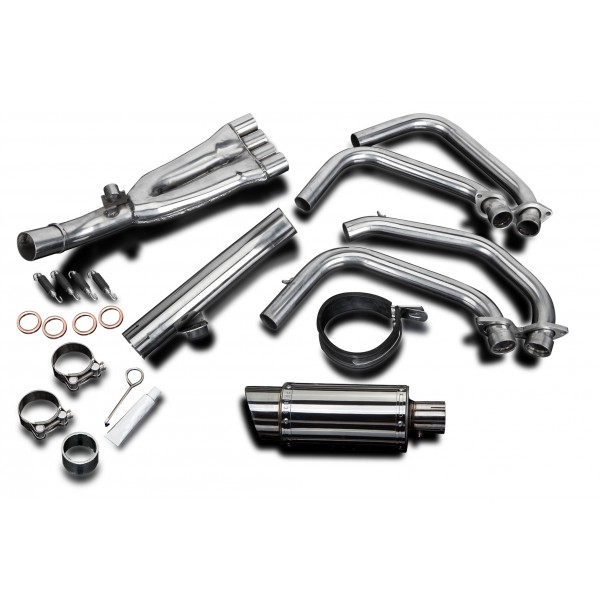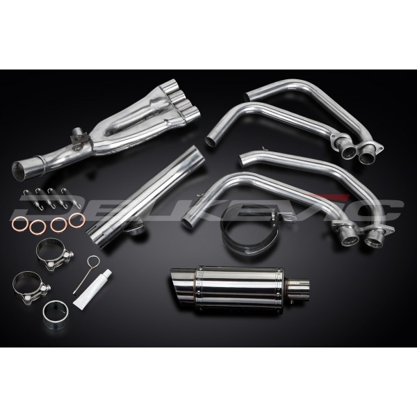 • This set includes - Delkevic down pipes, link pipe, silencer with a removable baffle, strap, clamps, and gaskets.