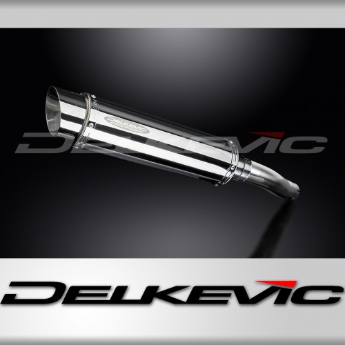 • This set includes - Delkevic silencer with a removable baffle, link pipe, clamps, and strap.