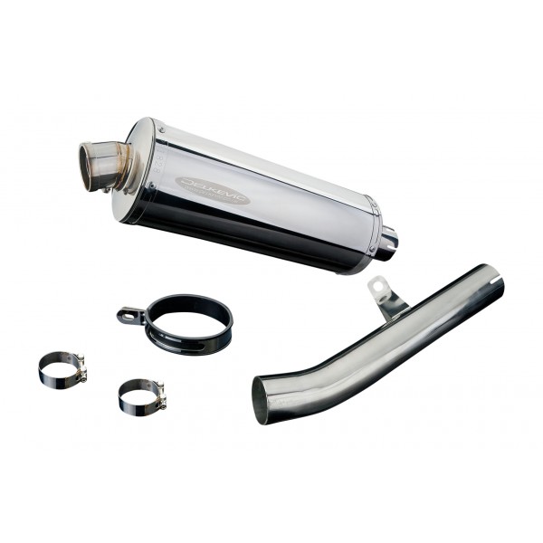 • This set includes - Delkevic silencer with a removable baffle, link pipe, strap, and clamps.