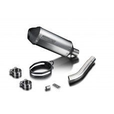 • This set includes - Delkevic silencer with a removable baffle, link pipe, clamps, and strap.