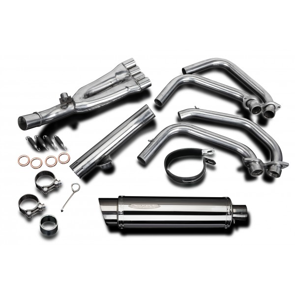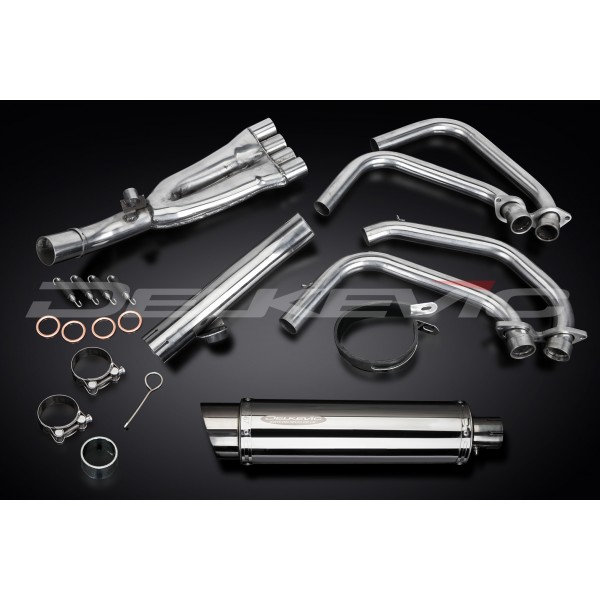 • This set includes - Delkevic down pipes, link pipe, silencer with a removable baffle, strap, clamps, and gaskets.