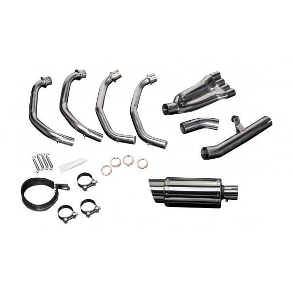 • This set includes - Delkevic down pipes, collector box, link pipe, silencer with a removable baffle, strap, clamps, gaskets and spring hooks.