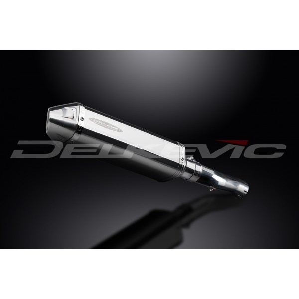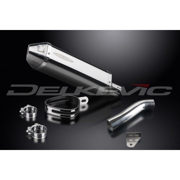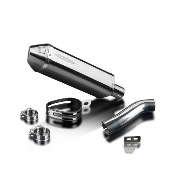 • This set includes - Delkevic silencer with a removable baffle, link pipe, strap, clamps, and additional bracket.