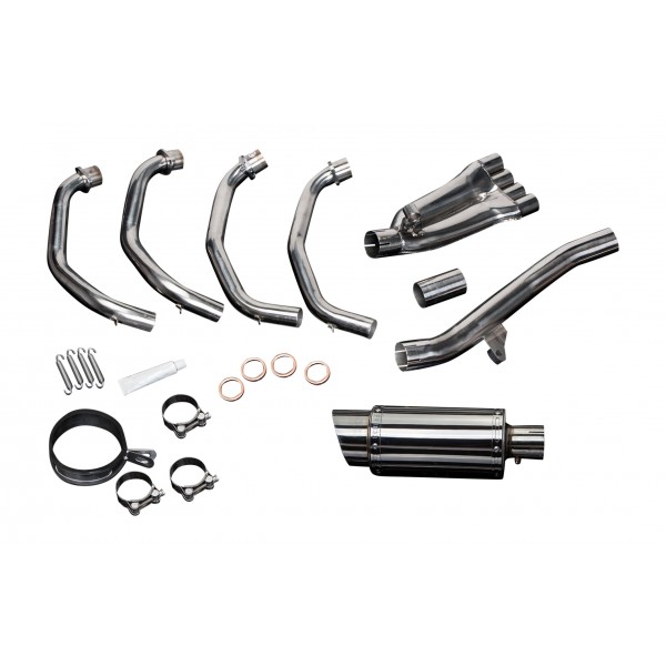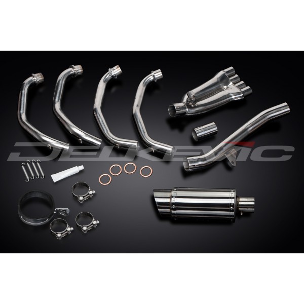• This set includes - Delkevic down pipes, collector box, link pipe, silencer with a removable baffle, strap, clamps, gaskets and spring hooks.