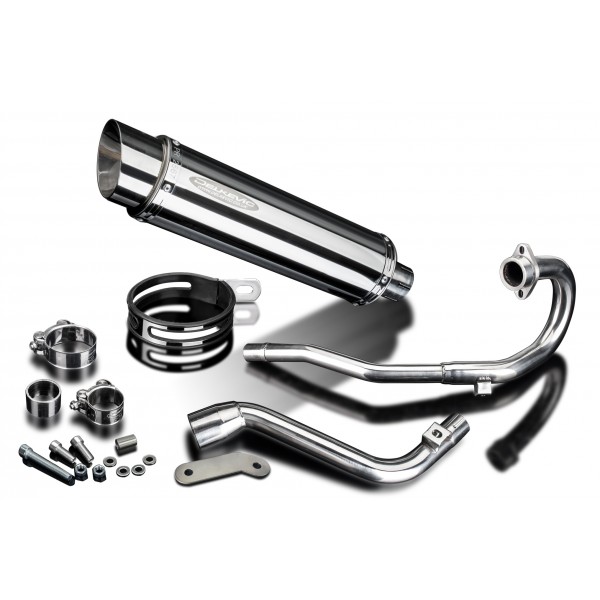 • This set includes - Delkevic down pipes, link pipe, silencer with removable baffle, strap, gasket, and clamps.