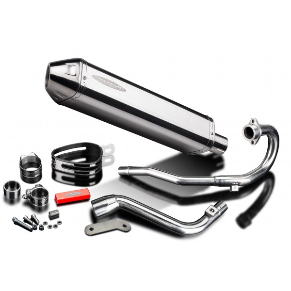 • This set includes - Delkevic down pipes, link pipe, silencer with removable baffle, strap, gasket, and clamps.