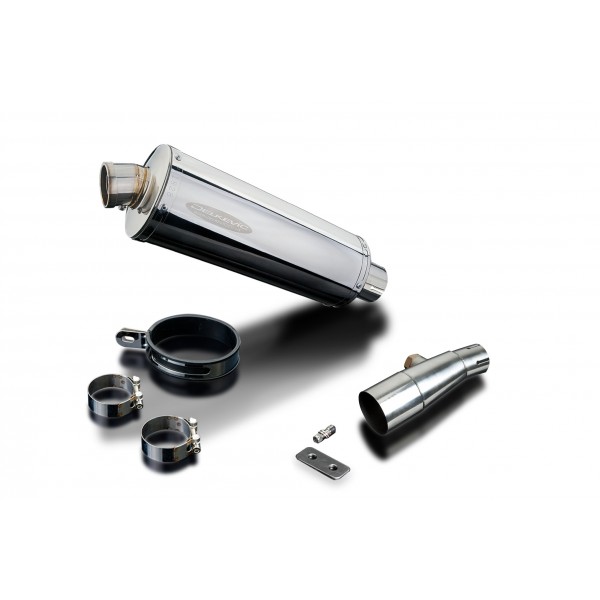 • This set includes - Delkevic silencer with a removable baffle, link pipe, strap, and clamps.