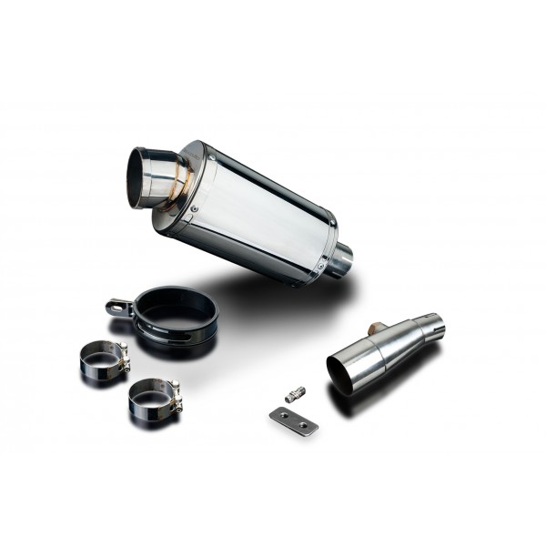 • This set includes - Delkevic silencer with a removable baffle, link pipe, strap, and clamps.