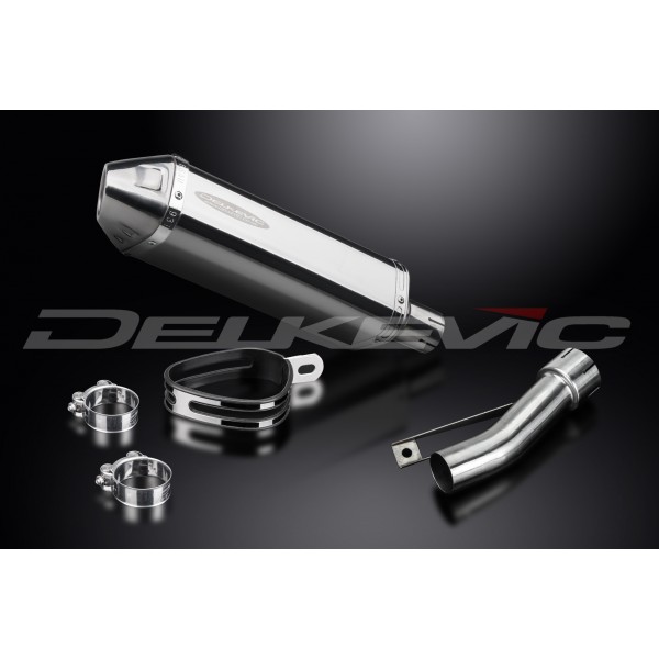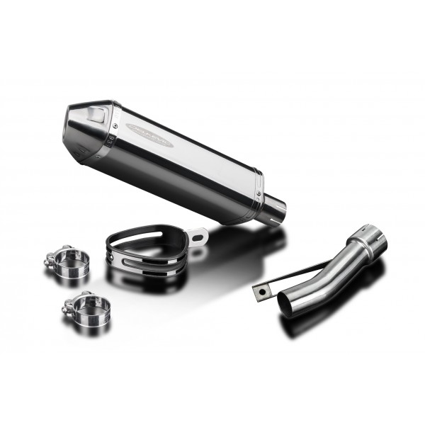 • This set includes - Delkevic silencer with removeable baffle, link pipe, silencer strap, stand stop rubber, and clamps.