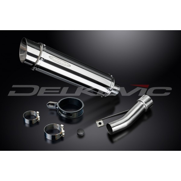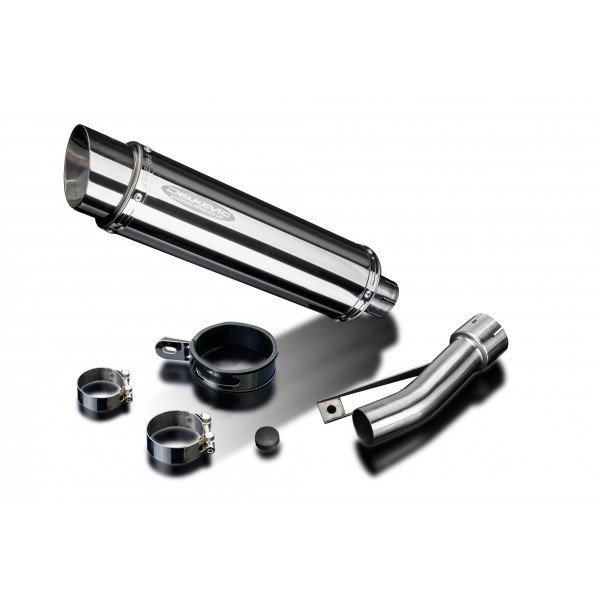 • This set includes - Delkevic silencer with removeable baffle, link pipe, silencer strap, stand stop rubber, and clamps.