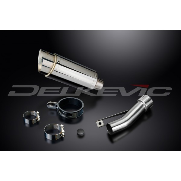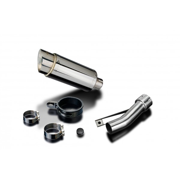 • This set includes - Delkevic silencer with a removable baffle, link pipe, silencer strap, stand stop rubber, and clamps.