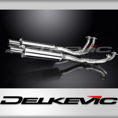 • This set includes - Delkevic down pipes, silencers with a removable baffle, bracket, straps, clamps, gaskets, washers, cap screws, and spring hooks.